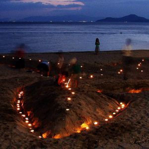 島で行っている芸術活動を側面からお手伝い。暗闇に浮かび上がる作品をサポートしました。